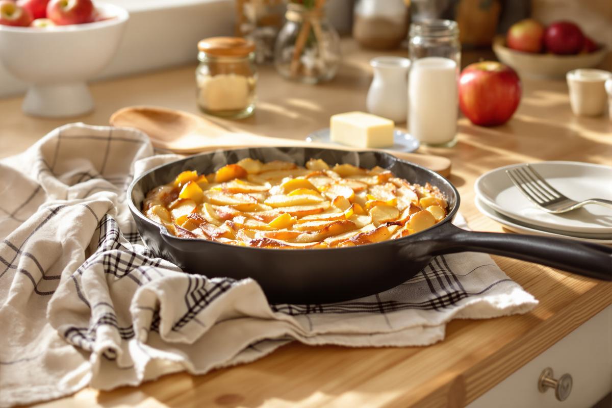 Quand le froid tape à la fenêtre, quoi de mieux qu’un dessert chaud aux parfums de pomme et de vanille ? Ce gâteau aux pommes à la poêle combine tout ce qu’on aime : facile, rapide et ultra fondant. Inutile d’allumer le four : tout se fait sur le feu, en moins de temps qu’il ne faut pour le dire.